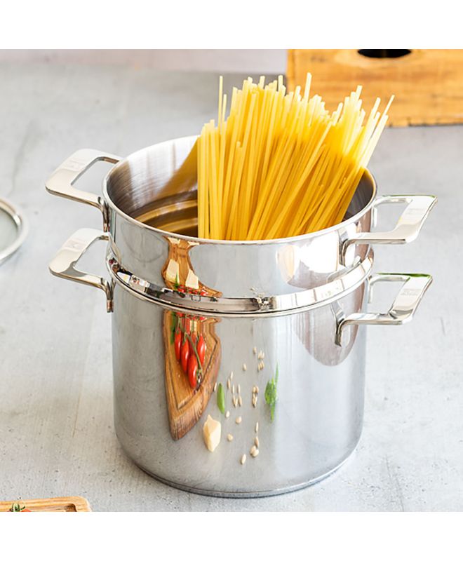 La passoire Signature en acier inoxydable a un design élégant et très fonctionnel, parfait pour égoutter les pâtes dans la même casserole. Il présente une finition polie et des poignées ergonomiques pour une prise en main confortable.